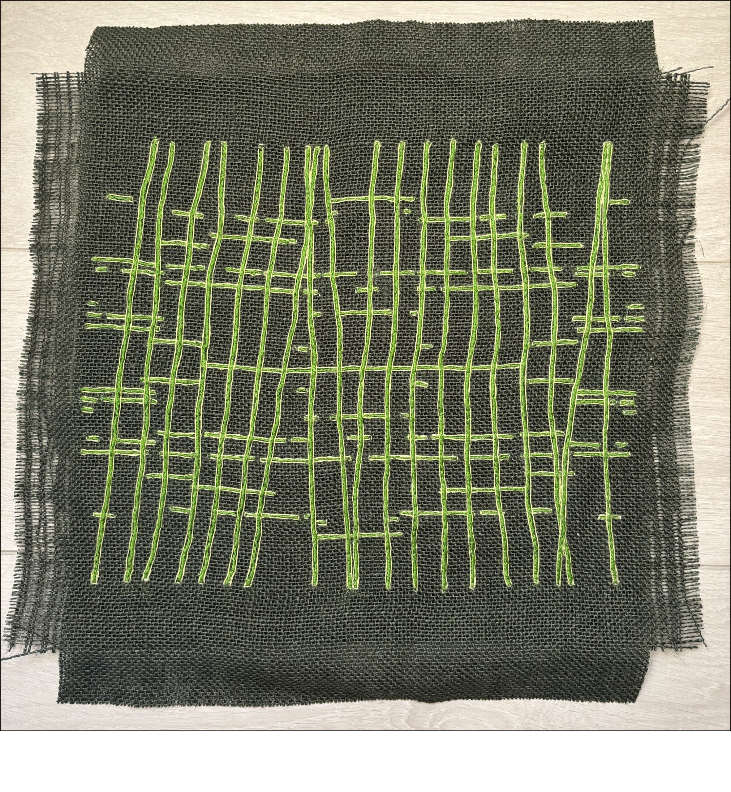 embroidered panel (hemp, cotton thread, linen)