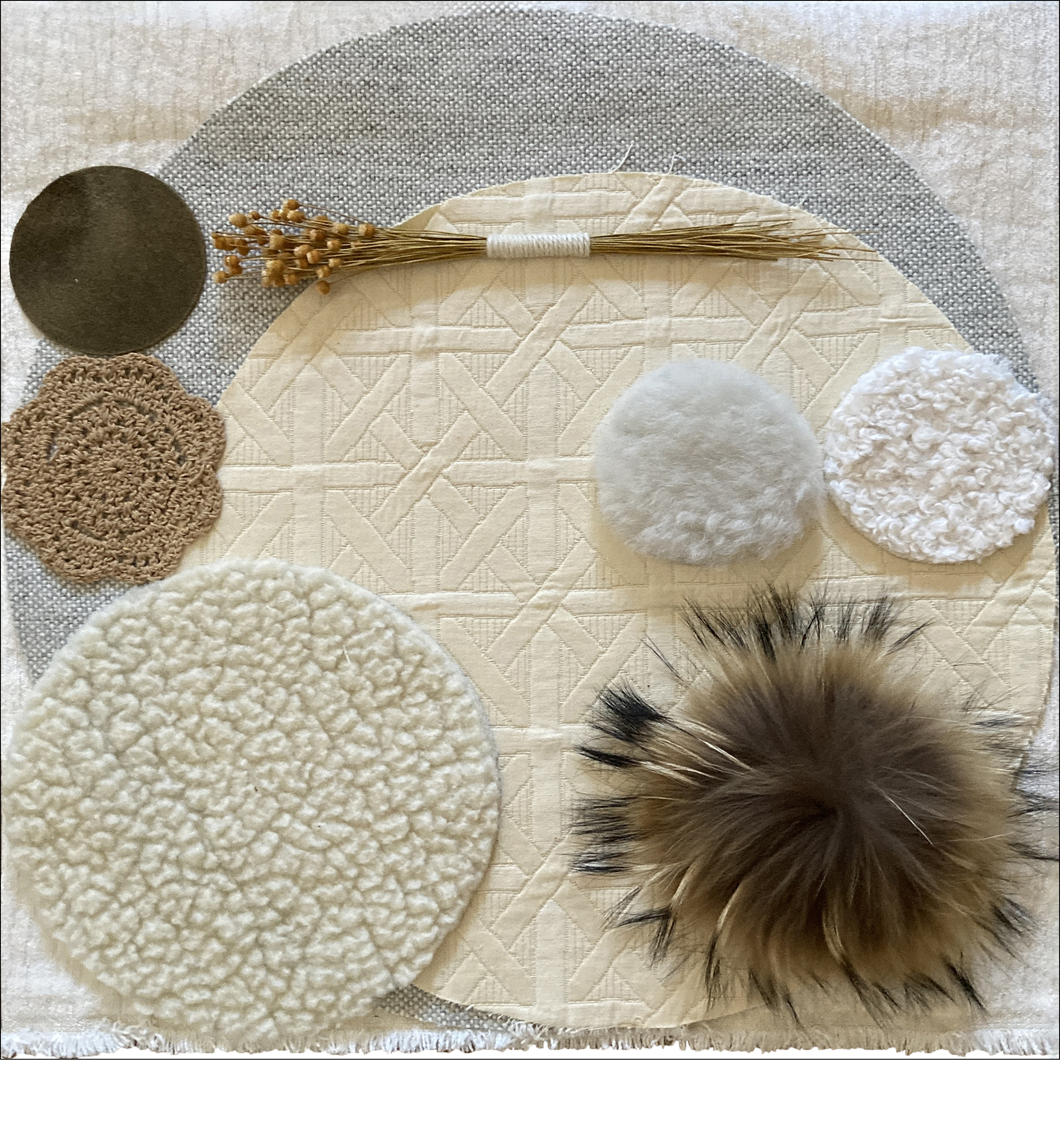 textile assemblage (vintage Icelandic fur and suede, dried flowers, fabric)